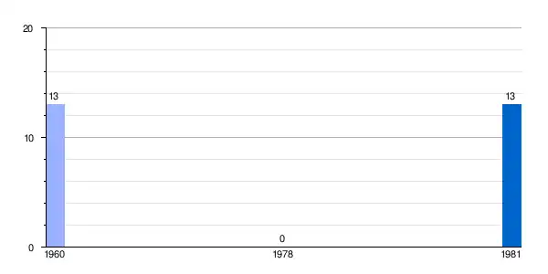 | Gráfica de evolución demográfica de Mimbredo entre 1960 y 1981 |