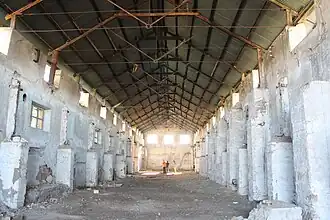 Complejo donde se transformaba el mineral y se daba salida a los humos procedentes de la combustión; se conservan tolvas, restos de raíles, charcas, pasarelas y un complejo entramado de conducciones para la evacuación de humos. En la nave de sacos se realizaba una primera filtración mediante unos sacos suspendidos en una estructura de hierro con agujeros, para intentar rescatar el plomo suspendido en el humo antes de llegar a la zona de chimeneas.