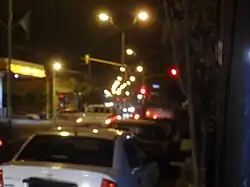 Vista nocturna de la avenida principal de Mina Clavero.