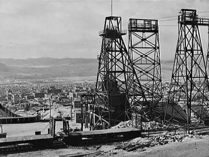 Castilletes de Anaconda con vistas a la ciudad de Butte. Foto de HAER