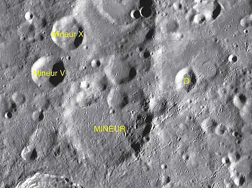 Por convención estos elementos son identificados en los mapas lunares poniendo la letra en el lado del punto medio del cráter que está más cercano a Mineur.