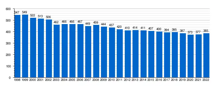 | Gráfica de evolución demográfica de Mingorría[13] entre 1998 y 2022 |