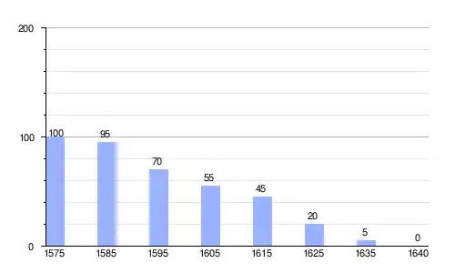 | Gráfica de evolución demográfica de Minguela entre 1575 y 1640 |