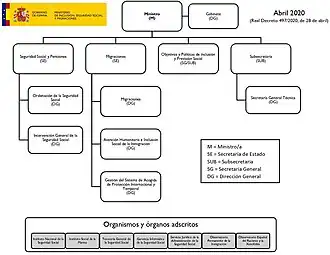 Esto cambió en el año 2020, cuando el presidente del Gobierno, Pedro Sánchez, otorgó a la Seguridad Social su propio ministerio, junto con competencias en materia de inclusión social y migraciones.[8] Para este cargo escogió al economista y auditor fiscal José Luis Escrivá Belmonte.[9]
