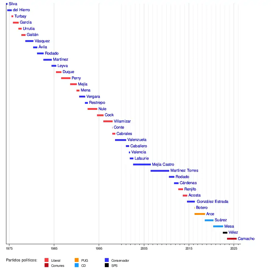 | 1.° | Gerardo Silva Valderrama | 13 de abril de 1974 | 7 de agosto de 1974 | Misael Pastrana Borrero | [1] |