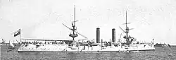 Como crucero protegido, los elementos vitales del barco estaban protegidos por una cubierta arqueada de acero que cubría toda su longitud con 89 mm de espesor en las pendientes y 32 mm en la parte horizontal de la cubierta. La torre de mando del barco estaba protegida por 100 mm de blindaje.[4][1] El armamento principal del barco consistía en ocho cañones de 6 pulgadas (152 mm) de tiro rápido de calibre 45, con dos a proa y popa en la línea central del barco, y tres en cada bao. El armamento secundario era de diez cañones de 6 libras (57 mm) y cuatro cañones de 3 libras (47 mm). El barco estaba equipado con tres tubos lanzatorpedos de 18 pulgadas (450 mm), uno fijo en la proa y los otros dos en montajes giratorios en el costado del barco.[1]