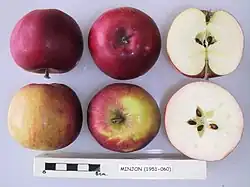 - ↑ a b c d e La manzana 'Minjon' en el "National fruit collection.org.uk". Consultado el 4 de febrero de 2022.