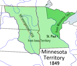 Entre 1783 y 1849, Minnesota formó parte de diversos territorios: de Luisiana, el Territorio del Noroeste, el Territorio de Illinois, el Territorio de Míchigan y del Territorio de Wisconsin. Este último territorio englobaba todo el actual Minnesota, así como los actuales Estados de Iowa y Wisconsin. Cuando Iowa y Wisconsin accedieron a la categoría de Estados, el Congreso de los Estados Unidos, el 3 de marzo de 1849, crea el Territorio de Minnesota, que ocupaba lo restante del ex-territorio de Wisconsin.