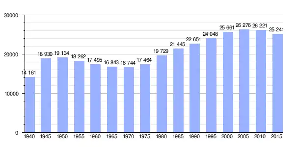 | Gráfica de evolución demográfica de Minowa entre 1940 y 2015 |