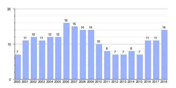 | Gráfica de evolución demográfica de Mirón entre 2000 y 2018 |