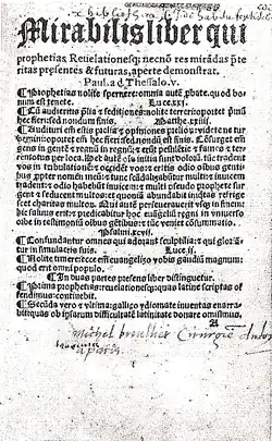 Mirabilis Liber es un libro escrito en latín y es la recopilación de distintas predicciones, que fue muy popular durante siglos en Europa. Varios escritores contribuyeron en esta recopilación, entre los que destacan algunos santos católicos y adivinos. Fue editado por un tal Juan Vatiguerro. En general, los articulistas eran tachados de fanáticos y se consideraban iluminados por algún motivo.