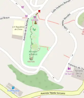 El Mirador de Killi Killi es un parque mirador ubicado al noroeste de la ciudad de La Paz, Bolivia. El nombre proviene del nombre local del halcón falco sparverius,[1]ave rapaz que habita la zona.