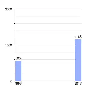 | Gráfica de evolución demográfica de Miraflores entre 1993 y 2017 |