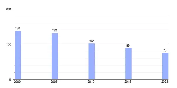 | Gráfica de evolución demográfica de Mirallos (parroquia) entre 2000 y 2023 |