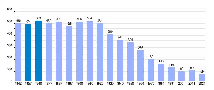 | Gráfica de evolución demográfica de Miralrío[4] entre 1842 y 2021 |