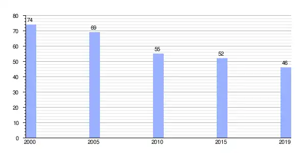| Gráfica de evolución demográfica de Miranda entre 2000 y 2019 |