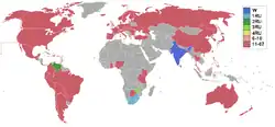 | Retirados | Aruba, Bermudas, El Salvador, Honduras, Lituania, Malta, Namibia, Uganda, Uruguay | |