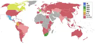 | Retirados | Antigua y Barbuda, Chile, República Democrática del Congo, Islas Caimán, Santa Lucía, Seychelles, Taiwán | |