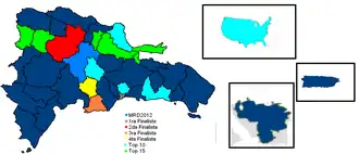 - Las provincias que colocaron en las Semifinales el año anterior fue Comunidad Dominicana en los Estados Unidos, Distrito Nacional, Duarte, Hermanas Mirabal, Peravia, Samaná, San Pedro de Macorís, Santiago, Santo Doming Norte.