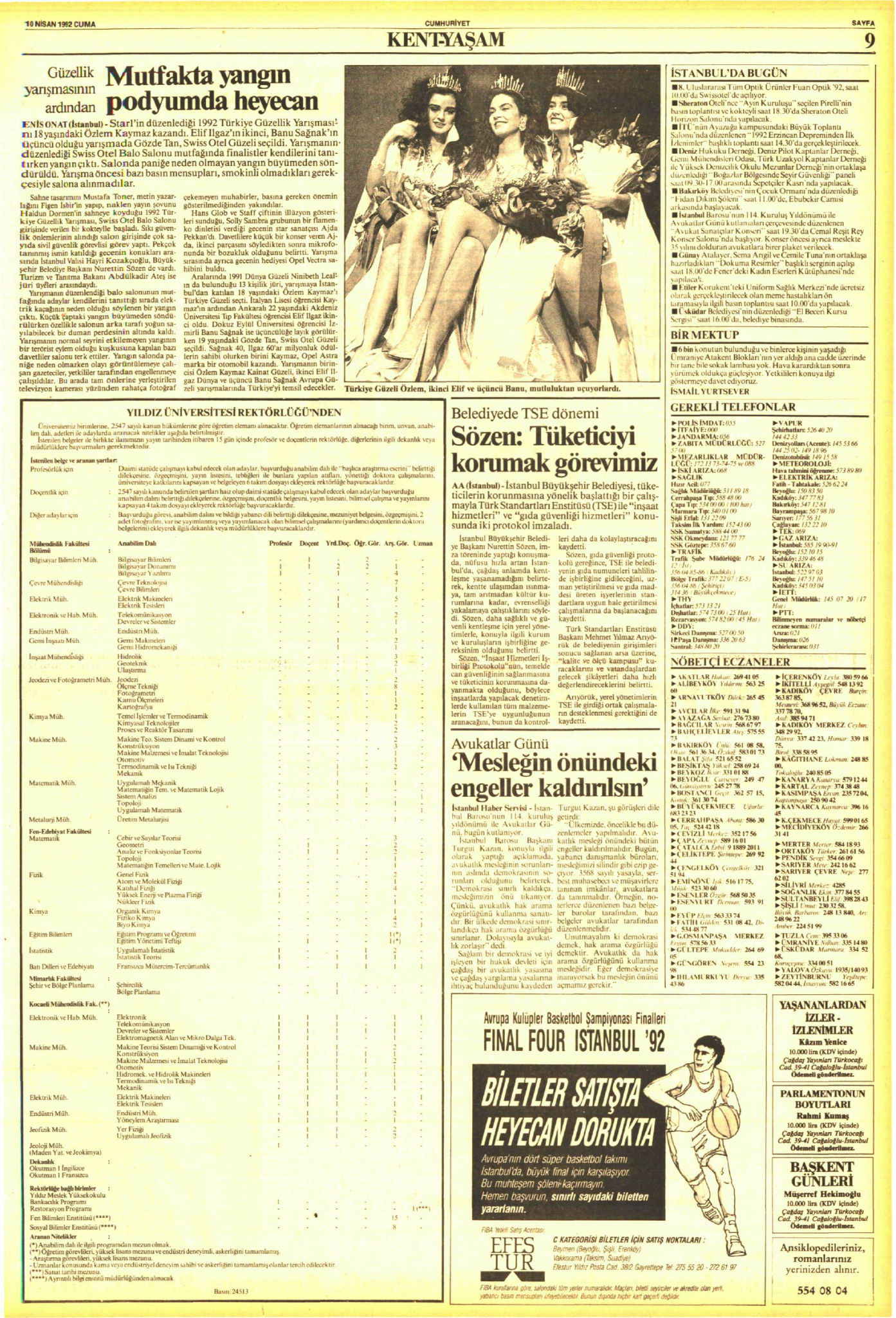 - ↑ a b c d «Mutfakta yangın podyumda heyecan» [Fuego en la cocina, emoción en la pasarela.]. Cumhuriyet (en turco). 10 de abril de 1992. p. 9. Archivado desde el original el 26 de agosto de 2025. Consultado el 26 de agosto de 2025.