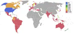 | Retirados | Antigua, Barbados, Bofutatsuana, El Salvador, Fiyi, Mauricio, Portugal, San Cristóbal, San Vicente, Sudáfrica, Surinam, Transkei | |