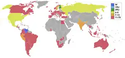 | Retirados | Guam, Islas Vírgenes de los Estados Unidos, Japón, Mauricio, Nicaragua, Nigeria, Seychelles, Zambia | |