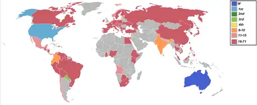 | Retirados | Albania, Argentina, Mauricio, Namibia, Nueva Zelanda | |