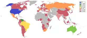 | Retirados | Egipto, Eslovenia, Islas Vírgenes de los Estados Unidos, Kazajistán, Portugal, Islas Turcas y Caicos | |