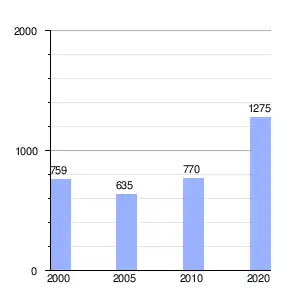 Cuenta con 1275 habitantes lo que representa un incremento promedio de 5.3% anual en el período 2010-2020 sobre la base de los 770 habitantes registrados en el censo anterior. Ocupa una superficie de 0.3535 km², lo que determina al año 2020 una densidad de 3606 hab/km².[6]