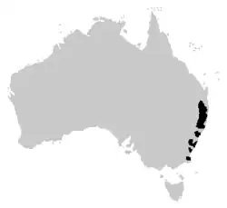 Esta especie es endémica del sureste de Australia. Habita entre los 20 y 1400 m sobre el nivel del mar en el este de Nueva Gales del Sur y el este de Victoria.[5]