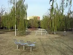 - Áreas recreativas: pueden ser de juegos infantiles, instalaciones deportivas (fútbol, baloncesto, voleibol, aparatos de gimnasia), zonas de pícnic, mesas de ping-pong, pistas de petanca y de skateboarding.[35]