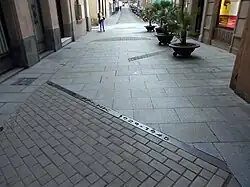- Información de obras o señalizaciones en el pavimento: tales como guías de invidentes, carril-bici, placas identificadoras de árboles o losetas de la Ruta del Modernismo.[24]