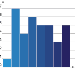 Ilustración del cálculo de la moda de una población. Para la población {1, 7, 4, 6, 5, 5, 3, 5}, la moda es 5.
