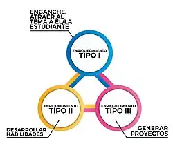 Este modelo fue creado por Joseph Renzulli y Sally Reis (1997)[1] para estimular y potenciar la producción creativa en niños y jóvenes, promoviendo el compromiso de los estudiantes a través de 3 Tipos de Enriquecimientos, los cuales están basados en el Modelo de Triple Enriquecimiento (o Modelo de Enriquecimiento Tríadico).