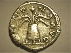 El modio fue un motivo de uso frecuente en la acuñación de monedas. Los emperadores romanos acuñaban con modios para indicar el servicio de Cura annonae sobre el suministro de granos a la ciudad de Roma, asegurando el suministro también en las provincias.