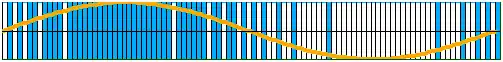 Podemos observar como, en los picos de máxima amplitud (π/2) obtenemos pulsos azules (1’s) seguidos, y a medida que va disminuyendo la amplitud, se van intercalando 0’s hasta llegar a valores mínimos de amplitud (3 π/2) representado con un seguido de pulsos blancos (0’s).