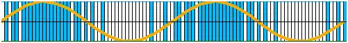 * En la imagen se representa un periodo de la señal seno, modulado con PDM y representada con 100 muestras.