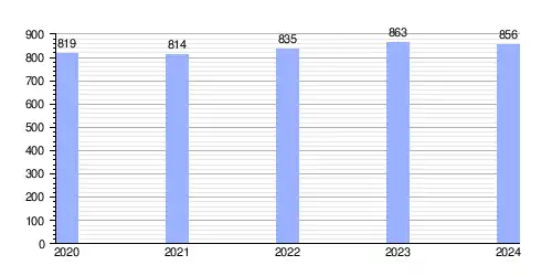 | Gráfica de evolución demográfica de Mogyorósbánya entre 2020 y 2024 |
