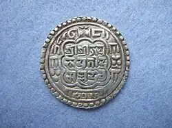 - Esta obra contiene una traducción derivada de «Nepalese mohar» de Wikipedia en inglés, publicada por sus editores bajo la Licencia de documentación libre de GNU y la Licencia Creative Commons Atribución-CompartirIgual 4.0 Internacional.