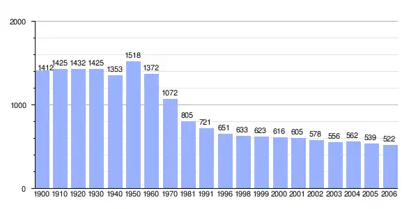 | Gráfica de evolución demográfica de Mohedas de la Jara entre 1900 y 2006 |