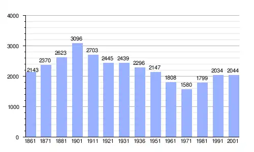 | Gráfica de evolución demográfica de Molare entre 1861 y 2001 |