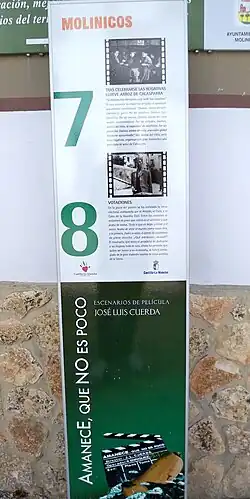 - ↑ a b c Cuerda, José Luis. Consejería de turismo Castilla-La Mancha, ed. «Escenarios de la película: Amanece, que no es poco». Archivado desde el original el 26 de julio de 2010. Consultado el 23 de julio de 2010.