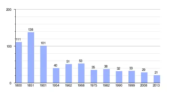 | Gráfica de evolución demográfica de Molpré entre 1800 y 2013 |
