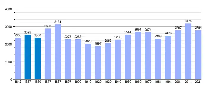 | Gráfica de evolución demográfica de Molvízar[1] entre 1842 y 2021 |