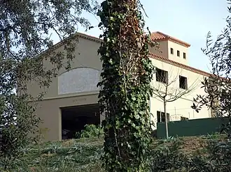 Originariamente era un edificio aislado, de planta rectangular, formado por planta baja, cubierta a dos vertientes y resuelto en un lenguaje clásico. Estaba inspirado completamente en el arte griego, donde el propietario y autor del proyecto del edificio, el pintor Joaquín Torres García, concibió la fachada principal, a poniente, como un templo, resuelto con atrio de columnas toscanas, arquitrabe y frontón liso. Este atrio daba acceso a la casa y se distribuía a lo largo de un pasillo que desembocaba en un pequeño patio central, cubierto, de doble altura, sobresaliendo al exterior en forma de tragaluz, cubierto a cuatro vertientes y decorado por el propio pintor con cuatro murales de temas mitológicos griegos. Además, dejaba a la vista la estructura de celosía de madera que soportaba la cubierta; la iluminación de este patio se realizaba a través de las ventanas que tenían vidrios de colores.[3]