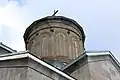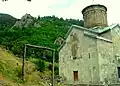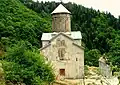 Los murales pintados en el interior representan, entre otros, un retrato grupal de la casa principesca local de Jaqeli, mecenas del monasterio.