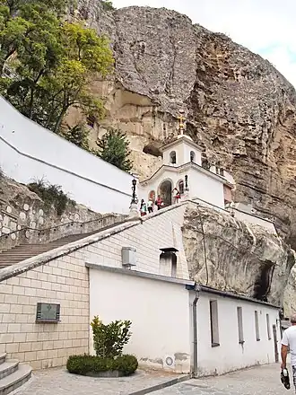 - ↑ «Black Sea travel - Crimea - Uspensky cave monastery». web.archive.org. 12 de febrero de 2010. Archivado desde el original el 12 de febrero de 2010. Consultado el 28 de julio de 2022.