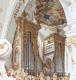 El órgano actual es de nueva construcción, de año 2005, inaugurado el domingo 24 de abril por el antiguo empleado federal Odilo Lechner. Ya en 1982 fue contratado por medio de un dictamen oficial, pues el primero órgano de 1965 ya no tenía una sonoridad y calidad satisfactorias. Desde este mismo momento ya había uno nuevo en mente. Fue finalmente ofrecido para el jubileo del monasterio y de la Iglesia del 2005 (750 aniversario), y la costosa construcción se empezó. Como constructor del órgano se escogió la empresa de Jann Thomas de Laberweinting-Allkofen de Ratisbonda. El instrumento muestra 34 registros, que son de los que tres teclados y el pedal. El registro fue tomado del instrumento predecesor del siglo XVIII.