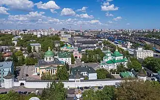 El edificio más antiguo es el katholikón dedicado a los Santos Padres de los primeros siete concilios ecuménicos (una dedicación que no se encuentra en ningún otro lugar del mundo cristiano). El templo inferior fue construido durante el reinado del Zar Alejo I como iglesia dedicada a la fiesta de la Intercesión. Dos iglesias superiores barrocas se completaron en 1730 y 1752, respectivamente. El katholikón es el único edificio de Moscú que presenta dos iglesias distintas encima de otra iglesia en la planta baja.