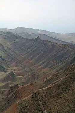 En las proximidades del monasterio, crestas onduladas y paralelas en la dirección NW-SO. En el sur, el terreno cae abruptamente en una llanura ligeramente ondulada de la vecina Azerbaiyán. El paisaje es pobre en agua y la poca vegetación de estepa, en su mayoría seca, se alterna con suelos secos, incluso al norte, algunos salinos. En dirección este, el paisaje se convierte en una zona semidesértica.